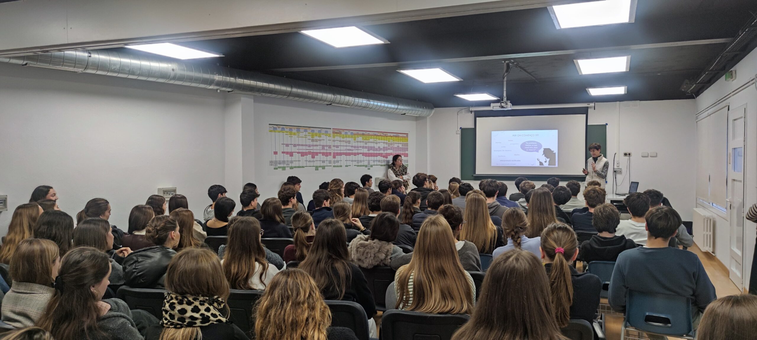 Una promoción acaba el Trabajo de Investigación, la siguiente lo empieza. Los alumnos de 1º han asistido a una sesión de la dra. Teresa Vallès, de UIC Barcelona, para aprender a elegir bien el tema del TR. Observar, hacerse preguntas, mirar qué datos tenemos a nuestro alcance… son las claves para triunfar en este proceso.