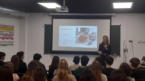 Nos acercamos ya a la fecha de entrega del «Treball de Recerca». 2º de Bach se prepara para la defensa oral, que tendrá lugar en diciembre, con una sesión de oratoria llena de consejos muy efectivos, a cargo de Isabel Béjar (UNAV) .