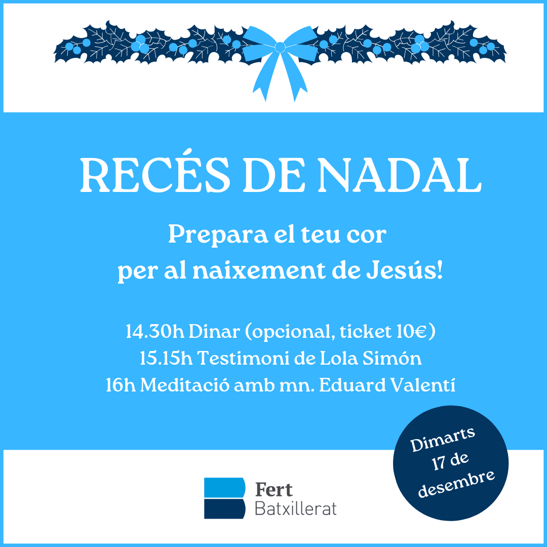 Navidad, ¡la mejor ocasión para reconectar con Dios! Os invitamos a participar de una tarde de retiro espiritual en la que, después de compartir una comida juntos, podremos rezar, reflexionar, escuchar un testimonio y redescubrir la verdadera Navidad.
